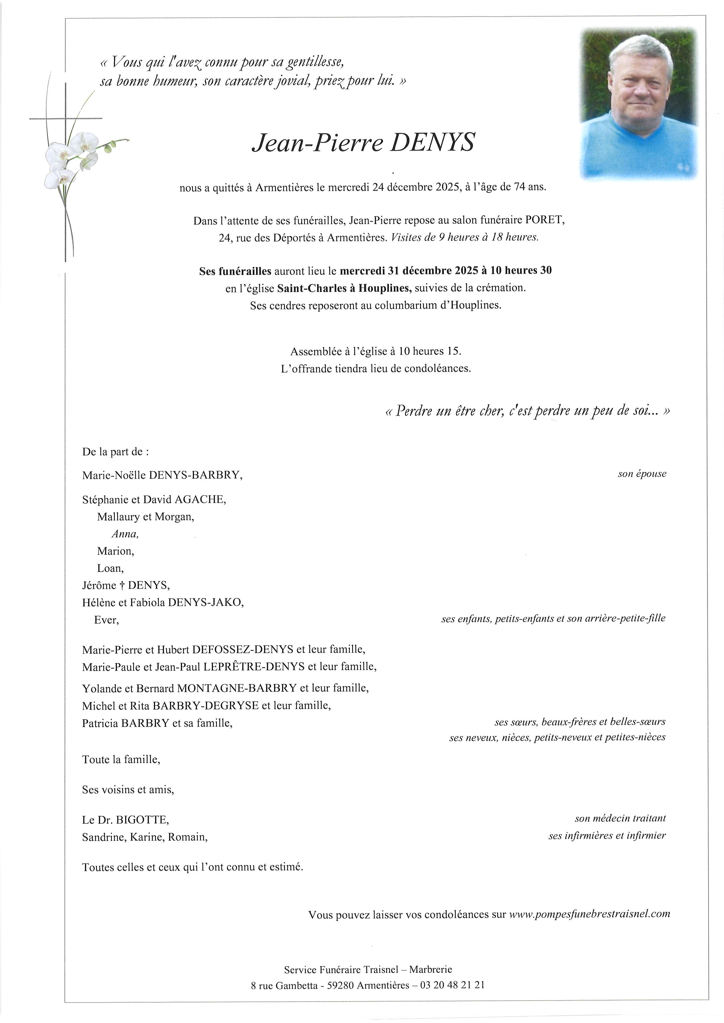 Avis de décès Traisnel Service Funéraire à Houplines